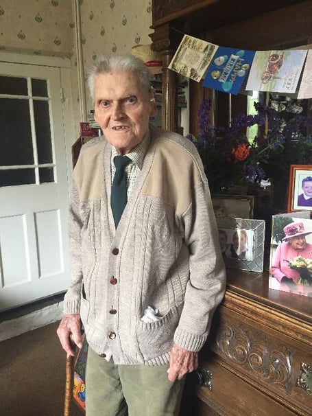 Now living with his daughter Sheila and son-in-law Peter Glynne enjoys his regular visits from his grandchildren and great grandchildren but found his celebration plans curtailed by the current lockdown - never afraid of embrancing modern technology he managed to speak to all his family via Facetime.